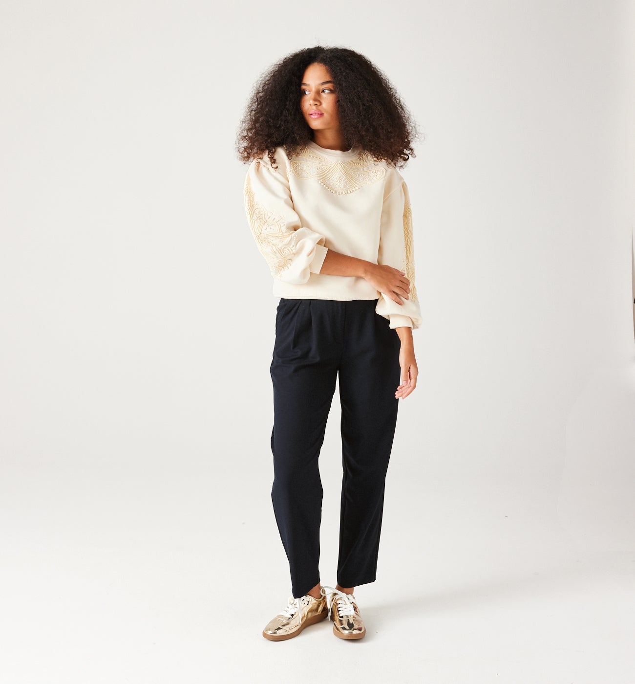 High-waist trousers - Ecru