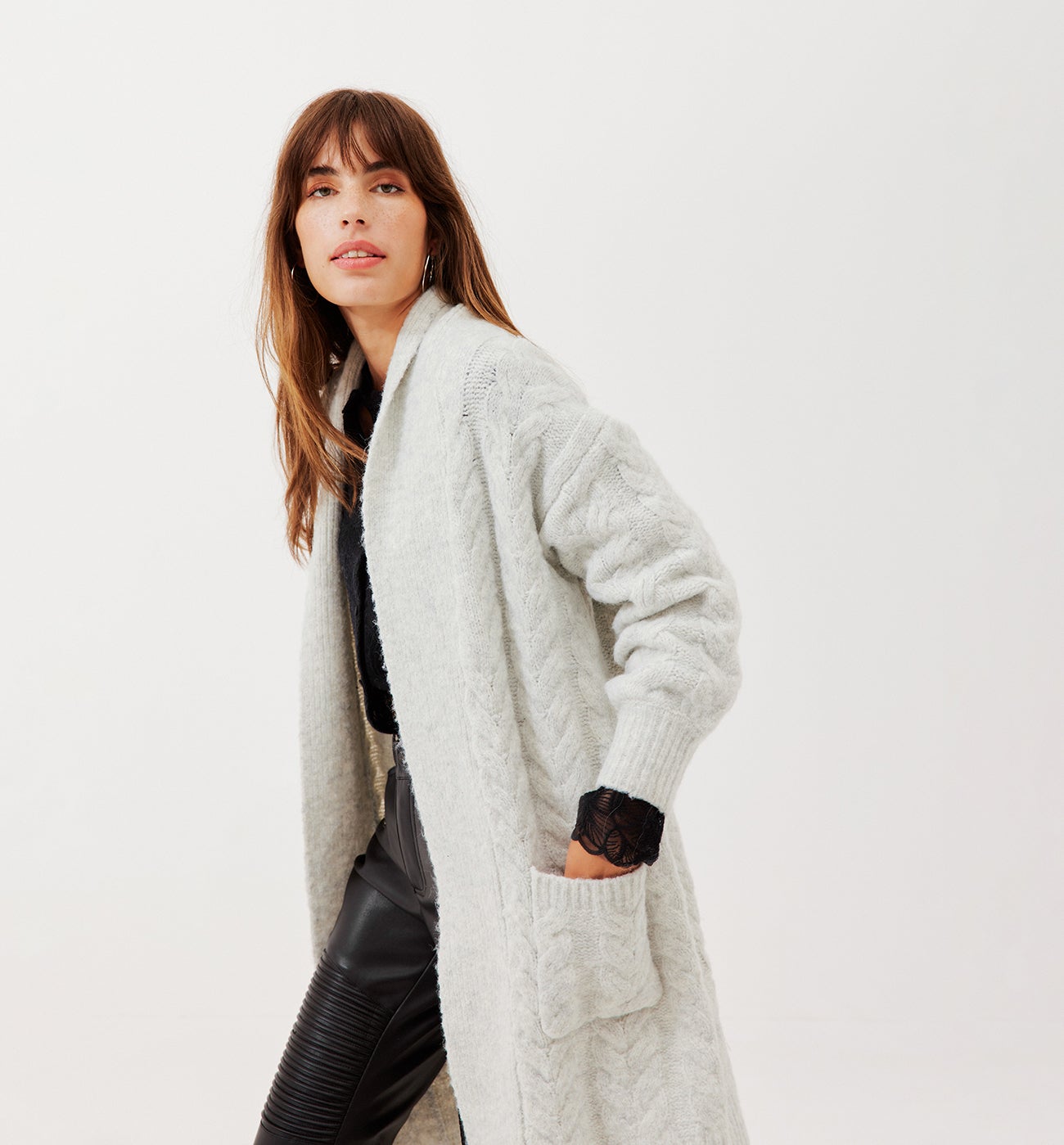 Long cable-knit cardigan - Chestnut brown