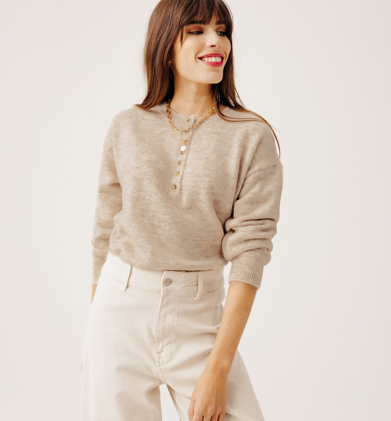 Trucker neckline cardigan - Ecru