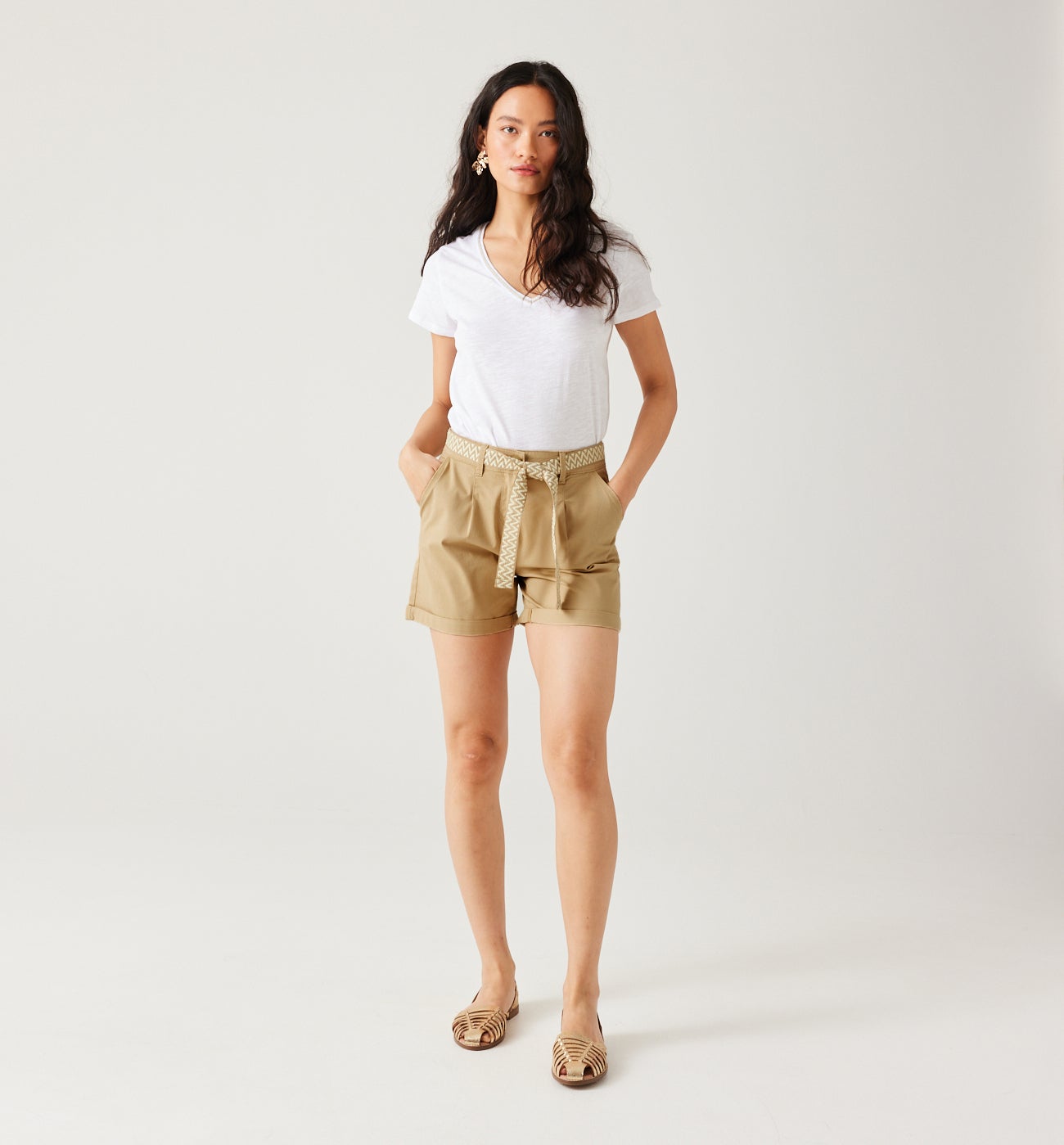Pleat shorts belt - Caramel