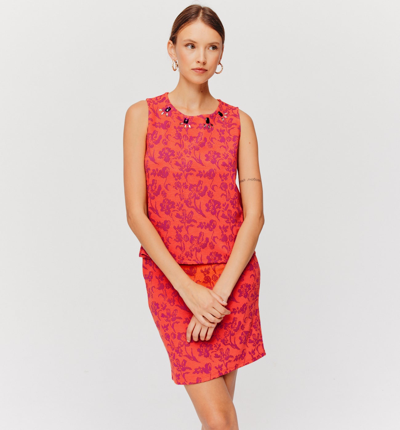 Jersey jacquard sleeveless top - Green print